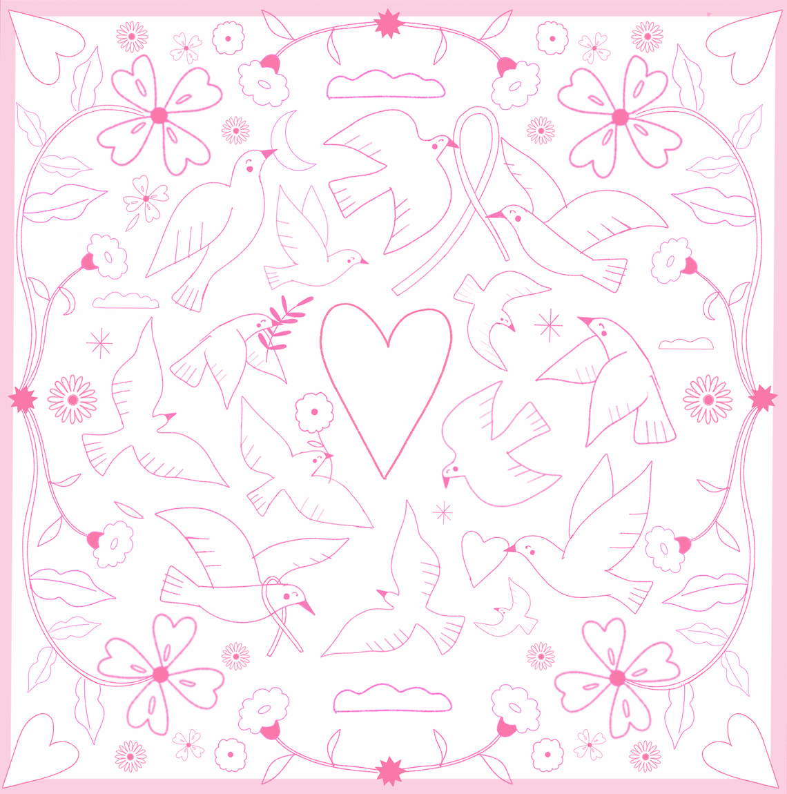 Collaboration avec Emily’s Pillow dans le cadre d’Octobre Rose 2025, pour la création d’une illustration exclusive imprimée sur un foulard en soie.Intitulée « Envolée de tendresse », cette composition évoque la douceur, la solidarité et l’espoir à travers une chorégraphie poétique d’oiseaux unis dans un même élan.