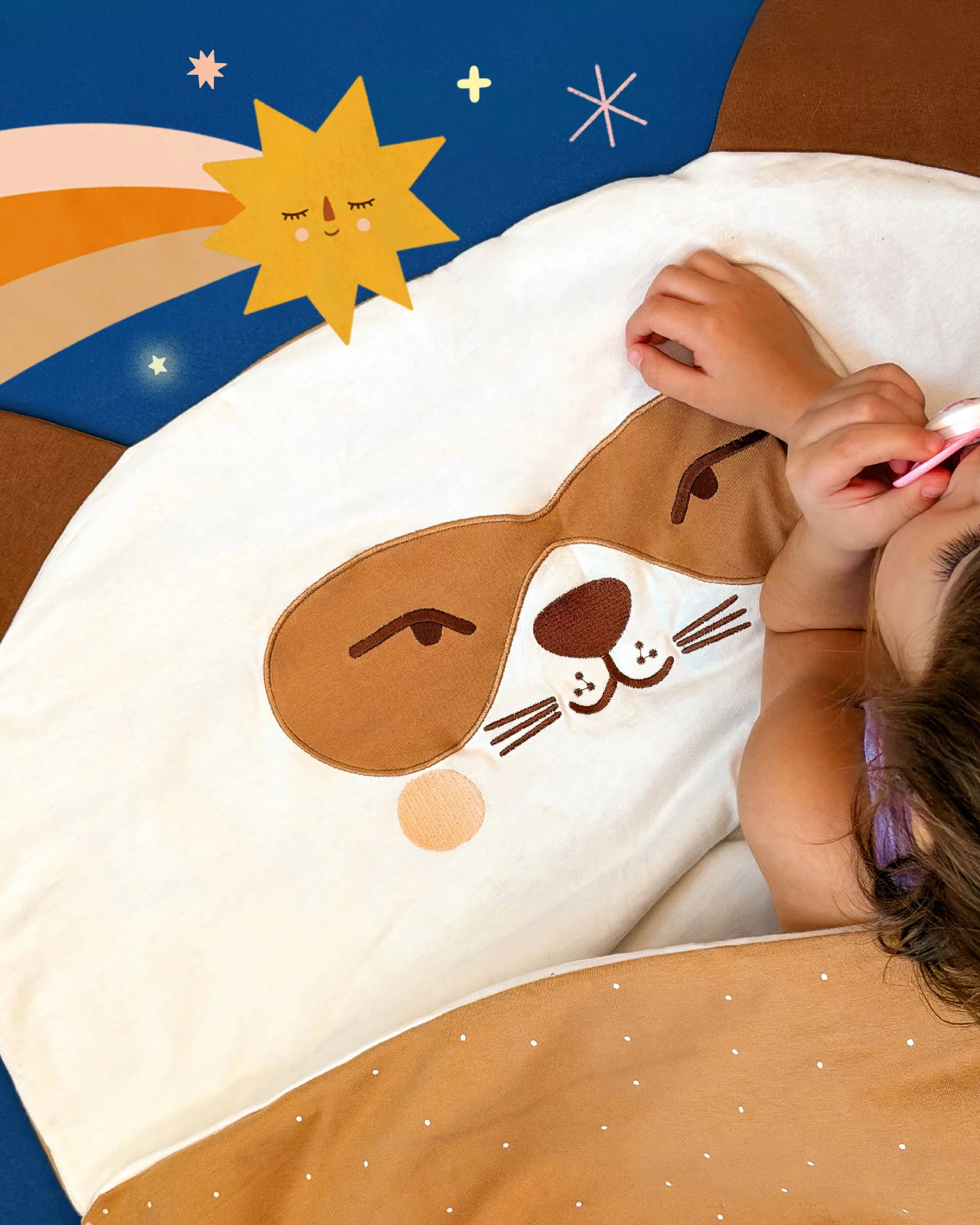 Collaboration with Les Petites Billes to create a soft, nighttime universe featuring a raccoon. The project includes the design of a sleeping bag, the illustration of a bedtime storybook, and the development of an exclusive night-themed pattern inspired by childhood dreams.